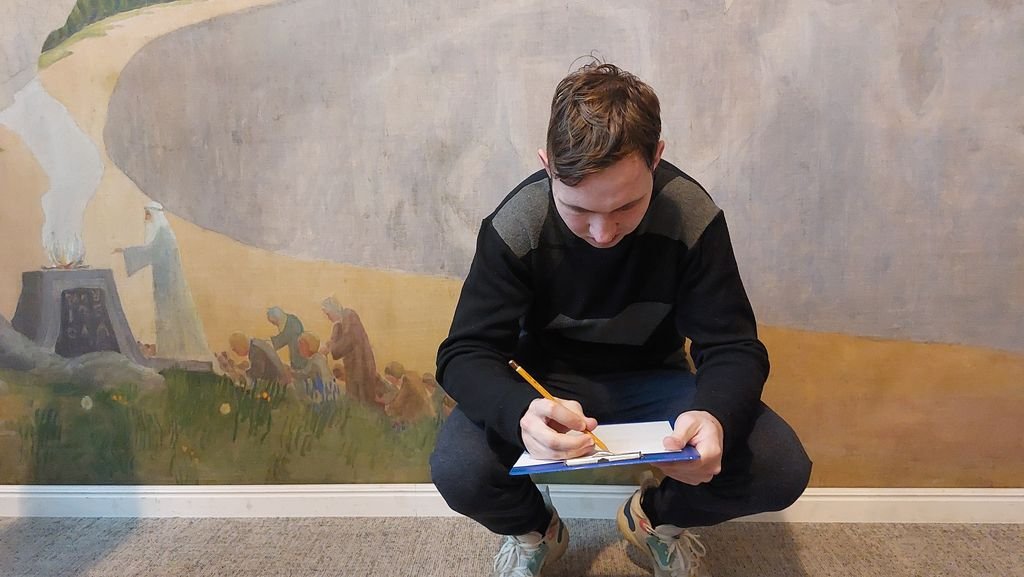 Apsilankymas prasidėjo ekskursija, kurią vedė gidė, įdomiai pasakojusi apie Čiurlionio gyvenimą ir meninę veiklą. Mokiniai sužinojo, kad Čiurlionis buvo ne tik dailininkas, bet ir kompozitorius, kuris savo kūryboje derino muziką ir tapybą.