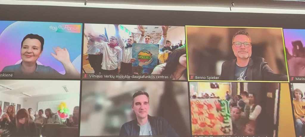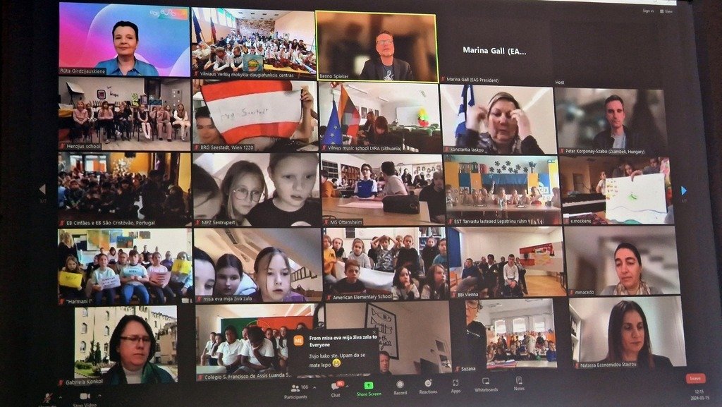 12.00 val. į virtualų susitikimą prisijungėme švęsti muzikinį ugdymą dainuodami, grodami, šokdami kartu su visa Europa. Pokalbių skiltyje draugams visame žemyne rašėme sveikinimus, mojavome vieni kitiems.