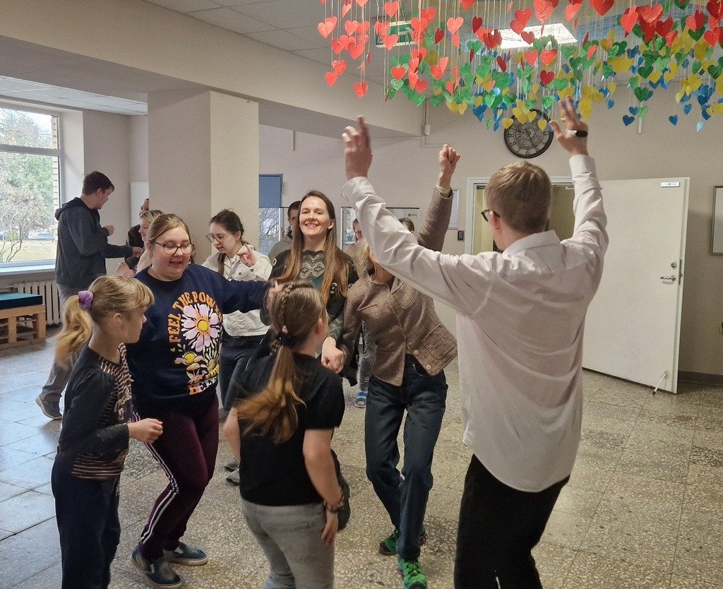 Tądien nuo pat ryto skambėjo muzika visoje mokykloje. Pertraukų metu mokyklos vestibiulyje mokiniai dainavo karaoke. Buvo smagu, kad prisijungė ir mokyklos bendruomenė, atvykę svečiai.