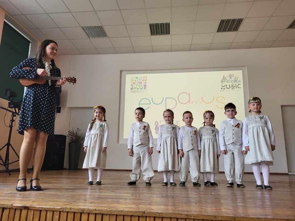 Dalyvavome klausimyne apie Europos šalių liaudies muziką. Buvo pateikta keletas muzikinių pavyzdžių. Juos reikėjo atspėti, iš kurios šalies jie atkeliavo. Dainavome EuDaMuS dainą – himną „Together“ („Kartu“) su visa Europa. Daugelis mokinių piešė, kaip įsivaizduoja ir supranta šių metų temą - „Unikalus ir vieningas muzikoje“. (virtuali paroda: https://youtu.be/5BEFx_8kOVY ). Šių metų naujiena - parengta mums ypatinga dovana - 24 Europos šalių dainų knyga: natos ir garso įrašai, dainos kontekstas ir rekomendacijos muzikos mokytojams, kaip išplėsti dainos mokymą.