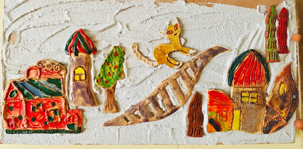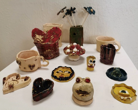 • kūrybinių darbų kūrimas: skulptūrėlės, indai, kaukės, rašto kompozicijos;