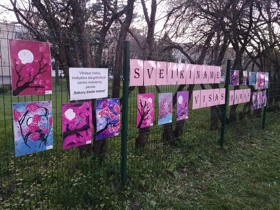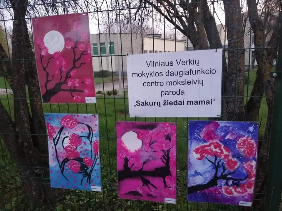 Vilniaus Verkių mokyklos 5-10 kl. mokiniai sveikina visas mamas, Mamos dienos proga, dovanodami parodą „Sakurų žiedai mamai“. Savo kūrybiniais darbais, žiedų gausa ir ryškiomis spalvomis Jums linki laimės, sveikatos ir stiprybės.