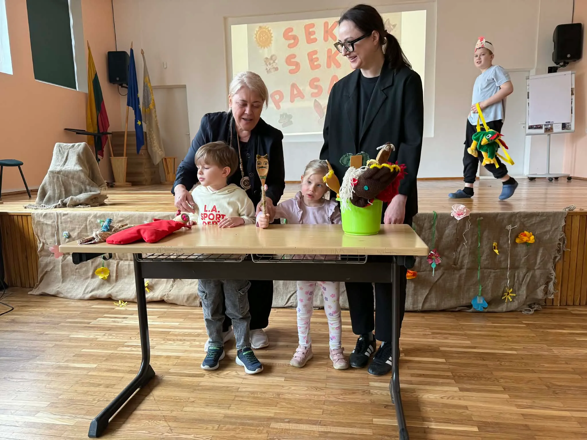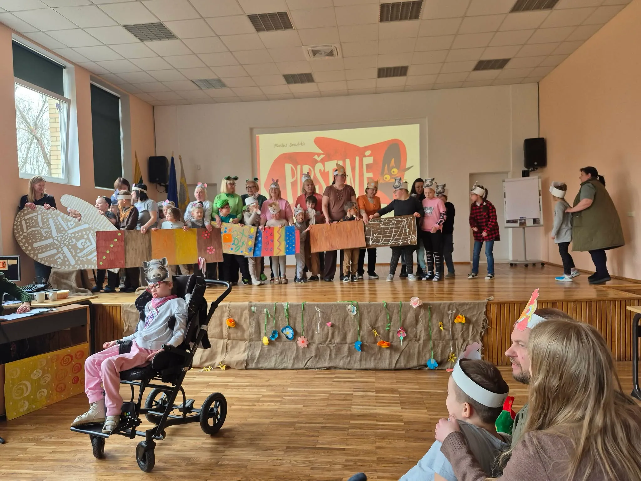 Muzikinės pasakos „Pirštinė“ vaidinimo metu mokiniai mokėsi sceninės kultūros: sekė, kada turi atlikti savo vaidmenį, kaip prisistatyti žiūrovams, būti dėmesingi ir atsakingi savo bei kitų atžvilgiu.