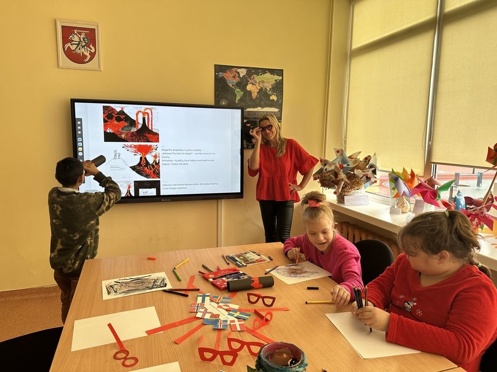Mokiniai dalinosi įspūdžiais, kokius nuotykius patyrė knygos veikėjai, susipažino kaip pasiruošti vykstant stebėti išsiveržiantį ugnikalnį, skaitė įdomius faktus apie Islandiją, piešė ugnikalnius.