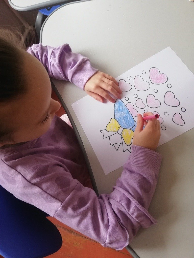 Mokytojai, mokytojų padėjėjos su pradinių klasių mokiniais piešė ir spalvino širdeles ir nešė jas į šv. Valentino pašto dėžutę, fotografavosi šv. Valentino foto rėmelyje. Vyresniųjų klasių mokiniai rašė romantiškus, meilės prisipažinimo laiškus, nuoširdžius linkėjimus ir padėkas už meilę ir draugystę.